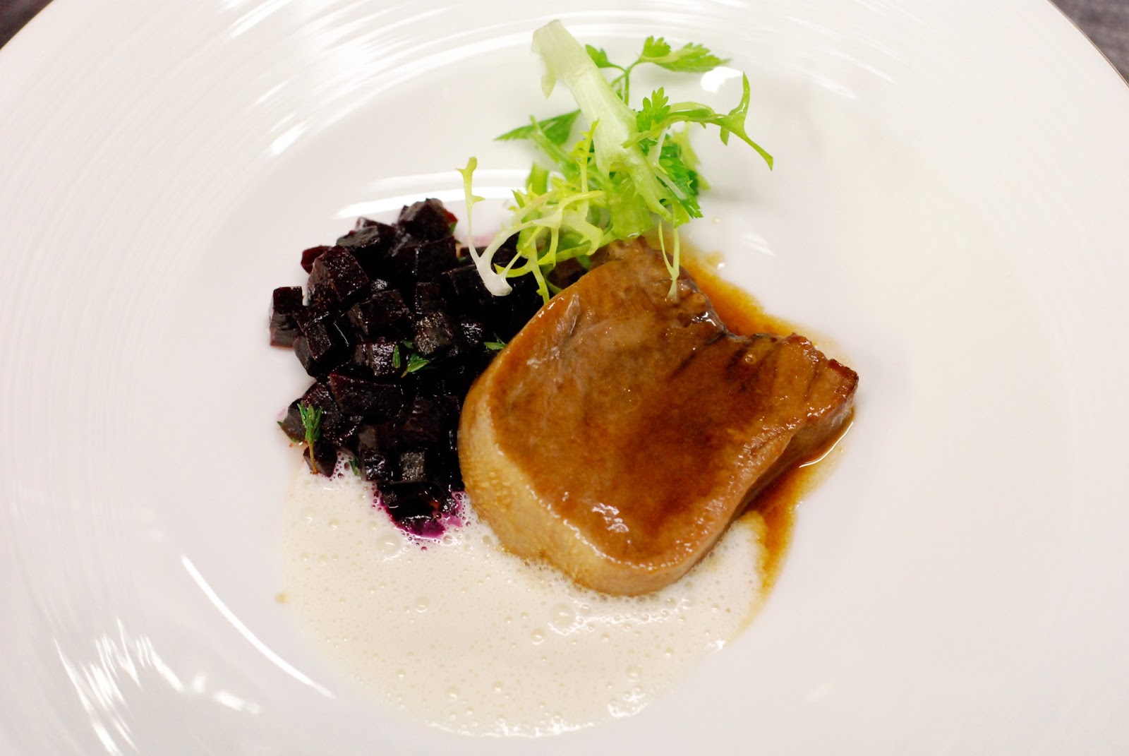 Pošírovaný mořský vlk přelitý omáčkou z dashi, citrónové trávy a másla, bok choi restovaný se shi take, cuketové rolky s dýňovým pyréSteak z hovězího pupku marinovaný v omáčce hoisin (patří k němu ještě salát s mangem a papájou)California rollKrevetová tikka s čočkovým salátem, čočkovým dhallem, mátová omáčka a květákový chléb kulchaComplimentary cake (místní cukrářský freestyle)Syrové krevety, chilli papričkySyrové krevety, chilli papričkyPad thai (v procesu)Pad thai (v procesu)Pad thai (v procesu)Pad thaiLososový pstruh s dýňovým pyré a restovanými hříbky (denní fresh market)Telecí jazyk s křenovou pěnou a konfitovanou červenou řepou